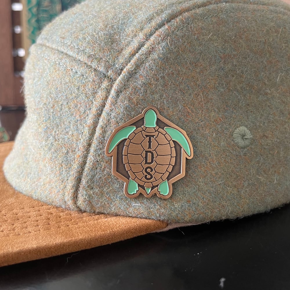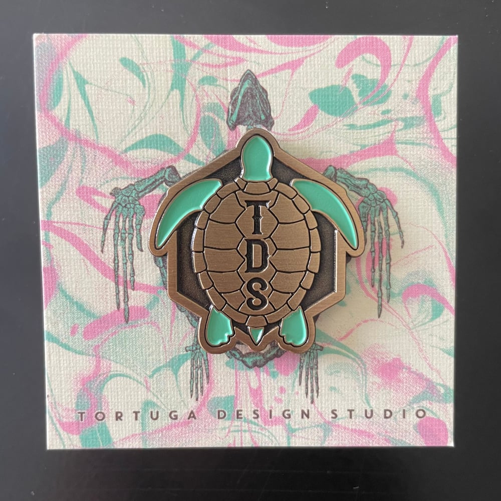 -Soft Enamel Pin in sand blasted antique gold and seafoam green.